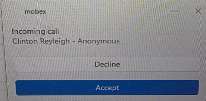 If you don't have the MobeX UC window open, a notification window will appear in the bottom-right corner.