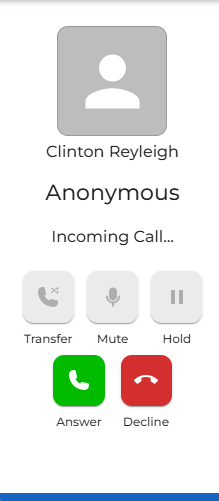 Press the green phone icon to answer the call, or the red icon to refuse it.