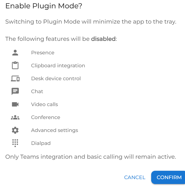 | After installation of the MobeX UC desktop software, you can enable the Teams Plugin | |