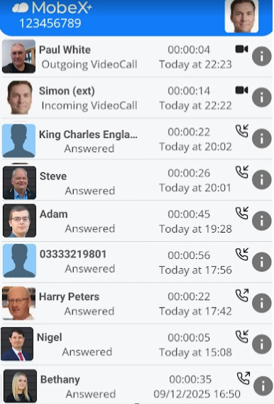 You can view all calls, including video calls, that you have received or made with this extension, as well as calls made by any other devices with the same extension number.