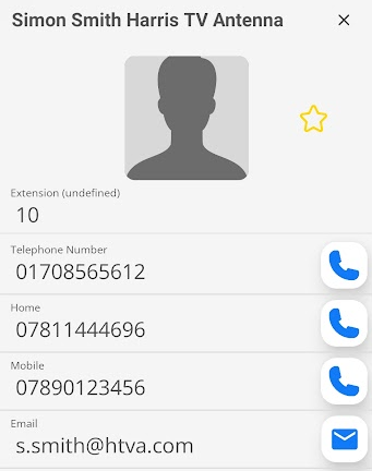 Click on the picture icon or the name to bring up the stored cloud phonebook details. | |