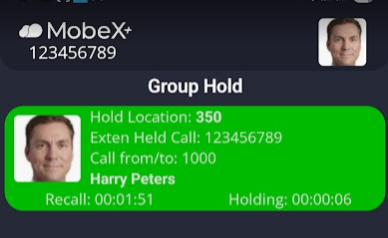 Anyone in the same group, regardless of which MobeX device they are on, can now pick up the holding call.