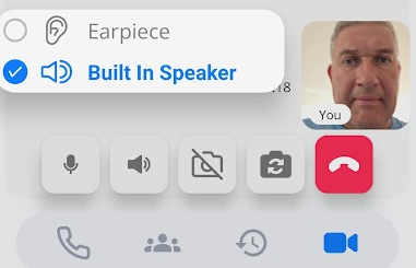 By pressing the speaker button, you can switch between audio connections. Probably not advisable to use the earpiece as no one wants to see the side of your ear. However, if you have a Bluetooth-connected device, you can switch to it instead.
