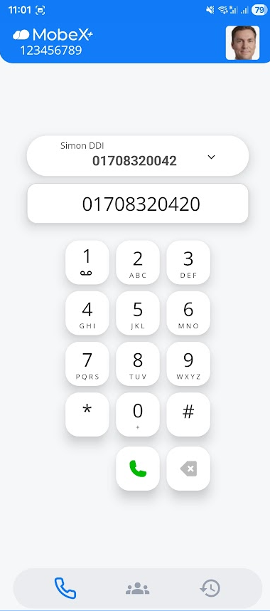 Using the blue handset button at the bottom of the screen