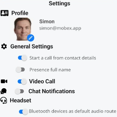 | Clicking on your Profile picture will allow you to create or upload a new image. This picture will be your presence picture that others in your organisation will see. |