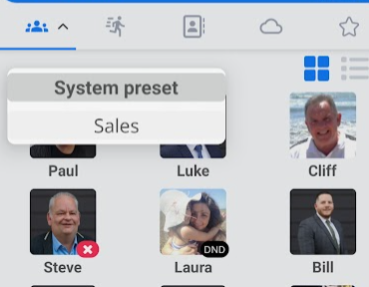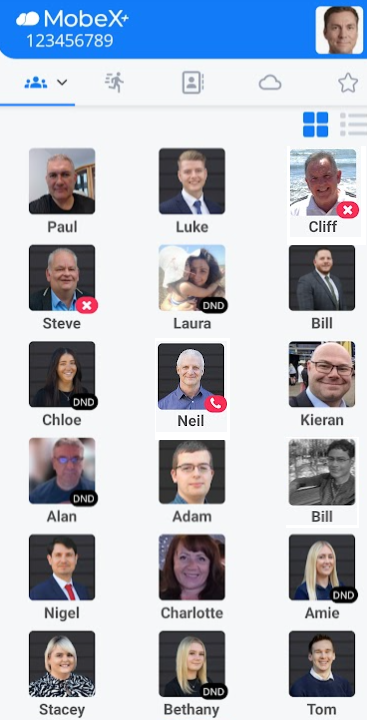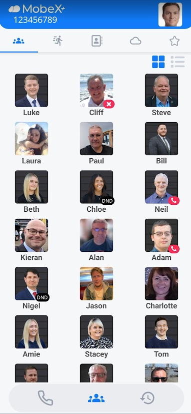 The first tab will display your presence, also known as BLF (Busy Lamp Field). Here you can see whether your colleagues are on a call, in DND, available or unavailable.