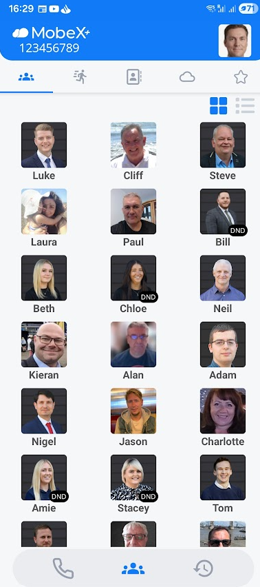 The first tab will display your presence, also known as BLF (Busy Lamp Field). Here you can see whether your colleagues are on a call, in DND, available or unavailable.