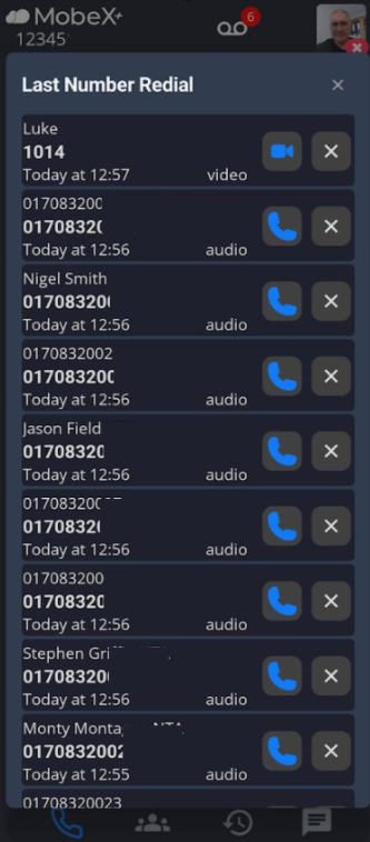 Press the redial key to display the available redial numbers.