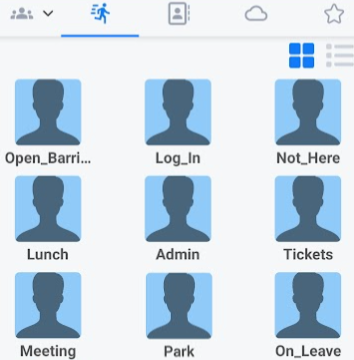 Pressing the speed dial icon next to the presence icon displays any speed dials set up for you.