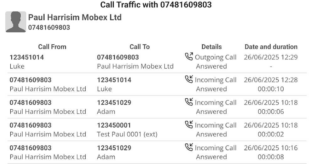 | This will then display a comprehensive list of information about the number and its previous contacts within the company. |