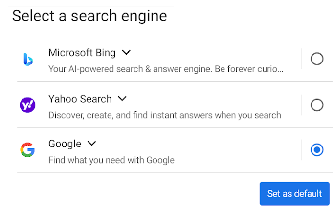 You can add any other one you like by visiting your Chrome browser and changing the search engine there. |