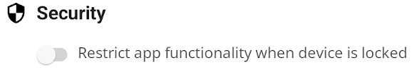 | When the security function is enabled, this works in tandem with the Android locked screen. It will remove the ability to view all feature screens, such as presence, call history, and notifications. It is still possible to make and receive phone calls, as well as receive video calls. | |