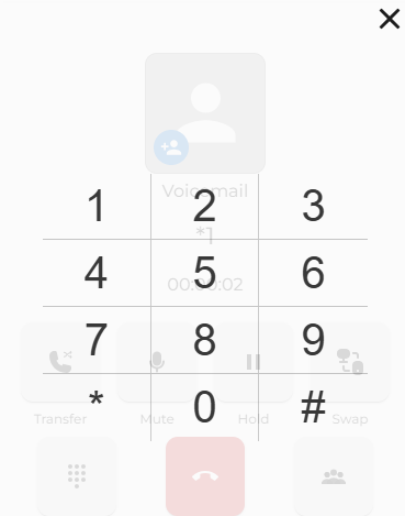 When the key is pressed, a new pop-up window appears, displaying the dial keys you can use to perform digit dialling.