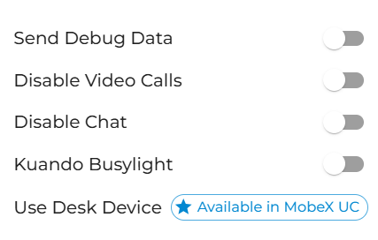 • Kuando Busylight should only be enabled if you are using the Kuando/MobeX busylight device.
