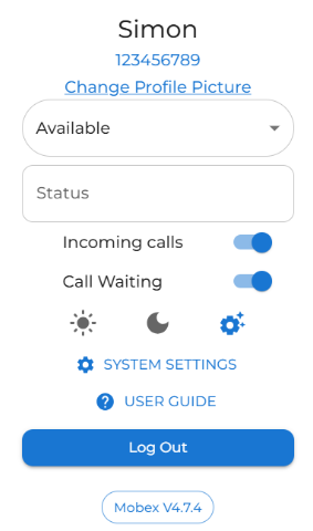 To stop your MobeX Web app from ringing, switch off Incoming Calls.