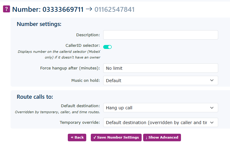 You will see that if you have requested a temporary number as part of your porting request, this number will be displayed alongside the number you are porting in on the portal. This means that any changes to the temporary number will also affect the ported number. | |