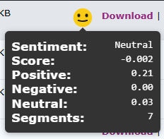 By hovering your mouse over the emoji, you can see the scoring of the sentiment.