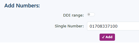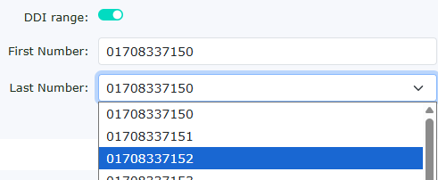 You can tick the DDI range option to enter a full DDI range. |