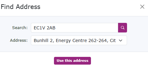 If you need help finding the address, use the search option on the postcode to try and find the correct address. |