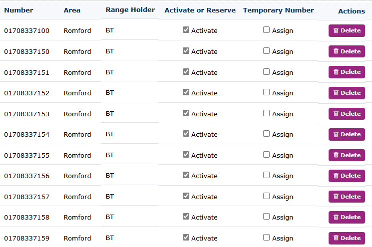 When adding numbers to the portal, please ensure that you include all numbers and double-check that they are accurate. If there are numbers on the current provider's bill or services you are porting in that you do not require to be live in the portal, please unselect any that you do not need to be live now. This could be any number, including those not required from a DDI number range. The numbers will be reserved in our portal for any future allocation to this customer. Other customers in the portal will not be able to allocate these numbers. |