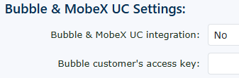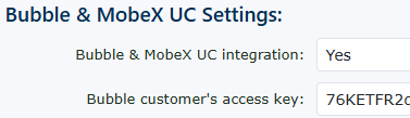 | Then return to the Bubble & MobeX UC Settings: to copy the customer's access key, which is required for the initial Bubble software to work with your customers' setup. |