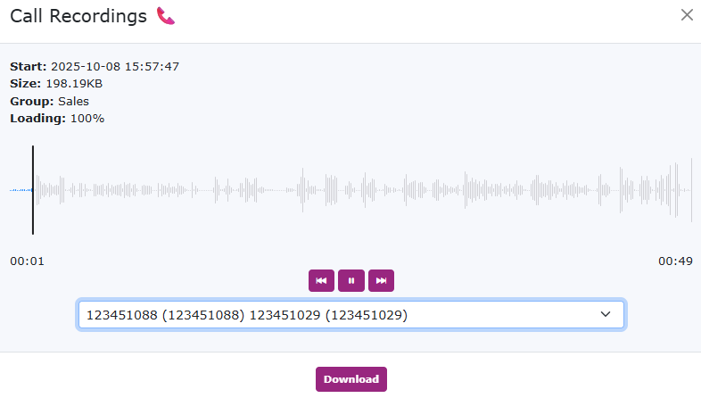 Call recordings can be downloaded by clicking on the download link here. | |