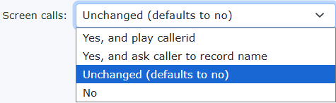 If enabled, it will play the caller's CLI and a message if you set a call screening message below. The destination will need to press 1 to accept the call. For example, it would be great if the number went off-network to a mobile device. This would give the receiving party more information about the call before they answer. |