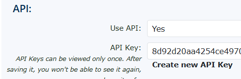 Once enabled it allows you to generate an API key. Click the create new API key to generate a new key.
