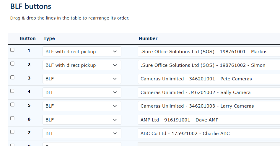 Now you have some customers with extensions under various Service Office Customers. You can now allocate the customer extensions to the receptionist console.
