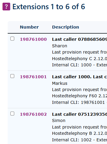You will see the customer's name and extension details within the same customer. This is to help identify if you have users with the same name, like Sally in this case. |