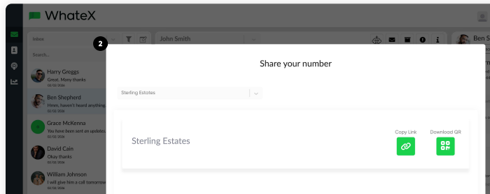 1. Click the WhatsApp icon in the top right to view your inbox URL.