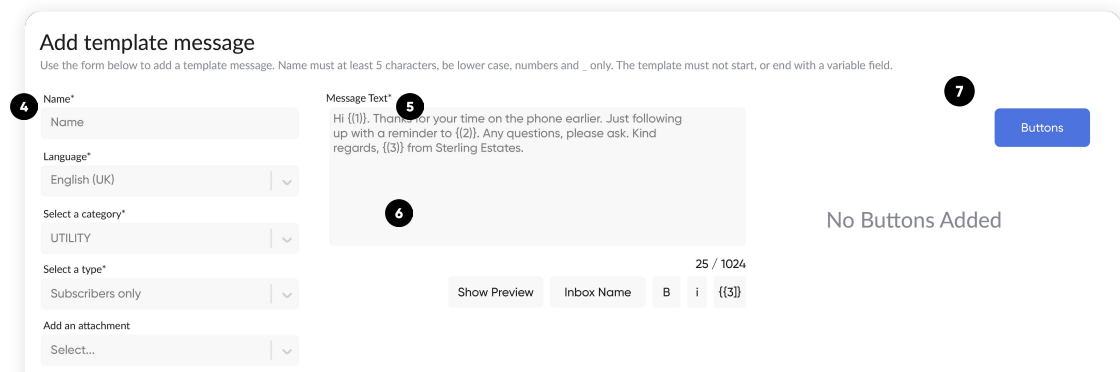 4. Create a template name along with additional information, including which inbox this template is for | |