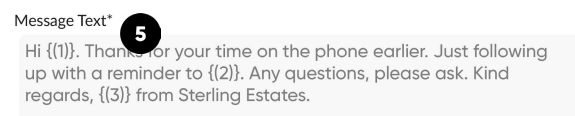 Note, you can only use numbers, and they MUST be in numerical order. You cannot start at the end of a templated message in a variable field.”
